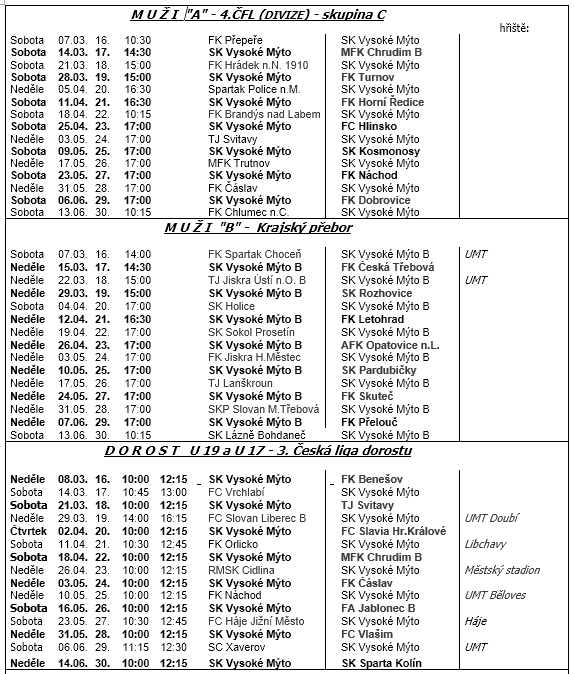SK VYSOKÉ MÝTO - fotbalový oddíl